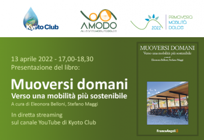 Mercoledì 13 aprile dalle ore 17-18.30 verrà presentato il libro di Eleonora Belloni e Stefano Maggi dal titolo “Muoversi Domani, verso una mobilità piu sostenibile”. Questo evento è stato organizzato da Kyoto Club, in collaborazione con AMODO e si terrà Online.