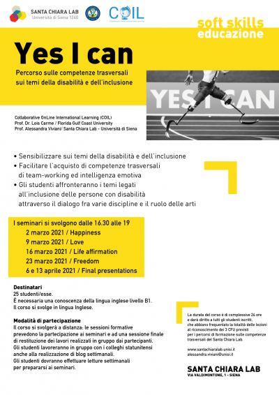 Nel mese di marzo si svolge il percorso di formazione sulle competenze trasversali "Yes I can" aperto a 25 studenti del nostro Ateneo, in collaborazione con la Florida Gulf Coast University.