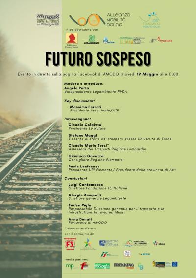 Giovedì 19 maggio, ore 17.00 sulla pagina Facebook di AMODO – Alleanza per la Mobilità Dolce viene presentata la II edizione del Dossier Futuro Sospeso, realizzato dalla Fondazione Cesare Pozzo, Federazione Italiana Ferrovie Turistiche e Museali FIFTM, Kyoto Club, Legambiente e UTP AssoUtenti, in occasione della Giornata delle Ferrovie delle Meraviglie e della Primavera della Mobilità Dolce. Un dossier che esamina la situazione di 1200 km di linee ferroviarie da riaprire al trasporto locale in Italia. Diviso per regioni, esamina lo stato di 38 linee che potrebbero essere riaperte senza gravosi investimenti e garantire efficace trasporto locale a una significativa parte della popolazione. Si tratta di una proposta strategica per il Paese, oggi più che mai necessaria, per rispondere al bisogno di mobilità sostenibile dettata dal nuovo scenario internazionale e dalla transizione ecologica.
