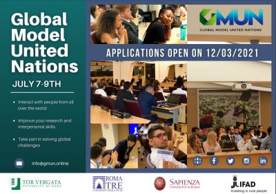 Global Model United Nations (GMUN) è un evento annuale (svolto completamente in inglese) che simula il lavoro delle Nazioni Unite, realizzato tramite la cooperazione tra le università pubbliche di Roma e il Fondo Internazionale per lo Sviluppo Agricolo (IFAD).