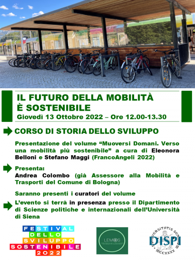 Presentazione del volume “Muoversi domani. Verso una mobilità più sostenibile” a cura di Eleonora Belloni e Stefano Maggi (FrancoAngeli 2022).Giovedì 13 ottobre 2022, dalle ore 12.00 alle ore 13.30 in presenza presso il Dipartimento di Scienze politiche e internazionali dell’Università degli Studi di Siena.