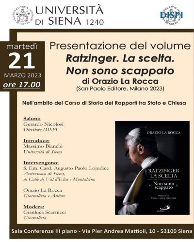 Nell'ambito del corso di Storia dei Rapporti tra Stato e Chiesa (Prof. M. Bianchi) sarà presentato il volume scritto da Orazio La Rocca.