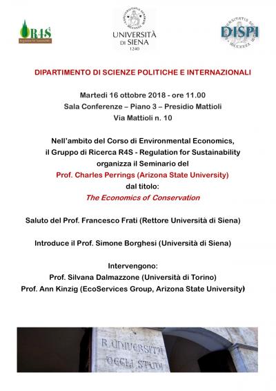 Nell’ambito del corso di Environmental Economics tenuto dal Prof. Simone Borghesi, il gruppo di ricerca R4S – Regulation for Sustainability- organizza il Seminario del Prof. CHARLES PERRINGS, (Arizona State University), dal titolo: