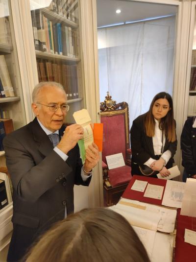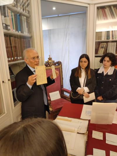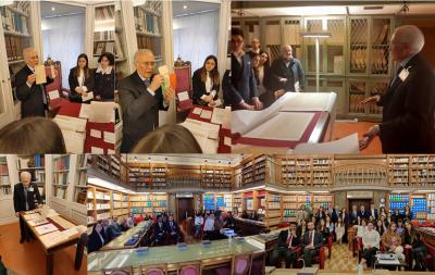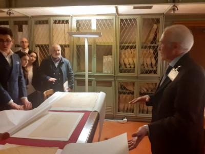 Il gruppo visiterà quindi gli ambienti galileiani della Biblioteca, per poi scendere fino al Chiostro di S. Caterina da Siena e proseguire quindi all’Archivio storico, dove verrà illustrato un breve itinerario espositivo appositamente allestito con alcuni esemplari di documenti originali dell’Assemblea Costituente ed altri documenti facenti parte del patrimonio storico-archivistico parlamentare.